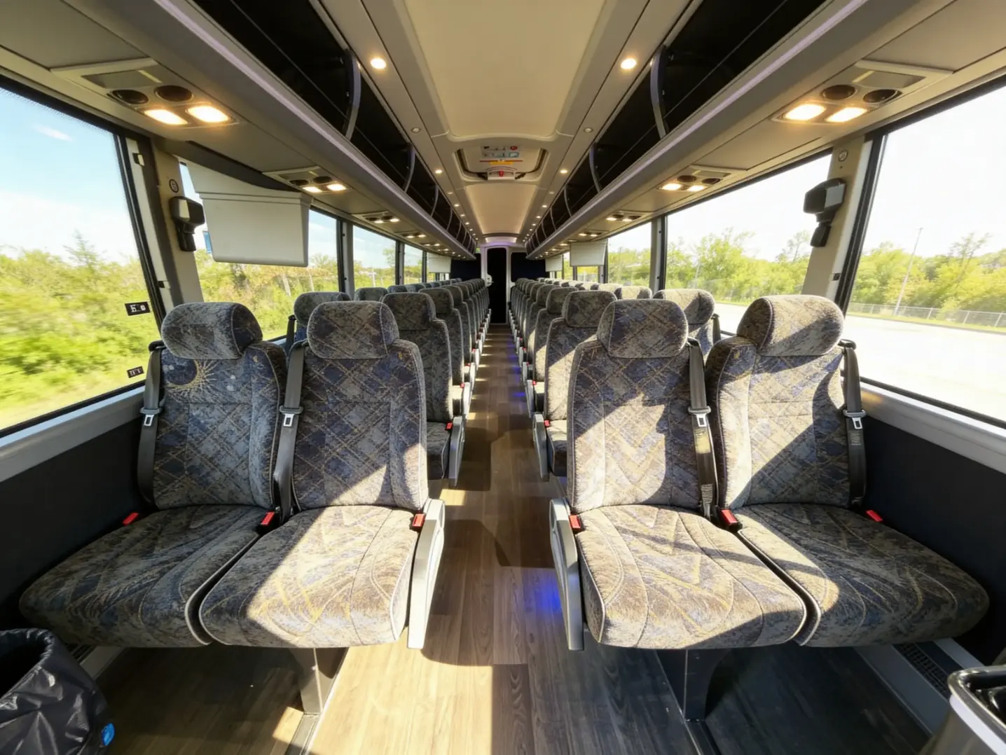 When you book with Charter Bus Rental Charlotte, NC, you'll get the best amenities in the industry-everything you need, nothing you don't. You can request features like WiFi, power outlets, reclining seats, on-board restrooms, overhead monitors, PA systems, and even ADA-accessible lifts and widened aisles. From all-glass panoramic roofs and color-changing LED lighting to fully equipped wet bars, Bluetooth sound systems, and leather-wraparound seating, we'll make sure your ride has exactly what your group needs. Our team will get you a bus that is fully equipped for your group's needs, whether that's an all-white 15-passenger minibus with WiFi and overhead storage for a corporate event or a 56-passenger motorcoach with undercarriage storage and televisions for a long-distance road trip.